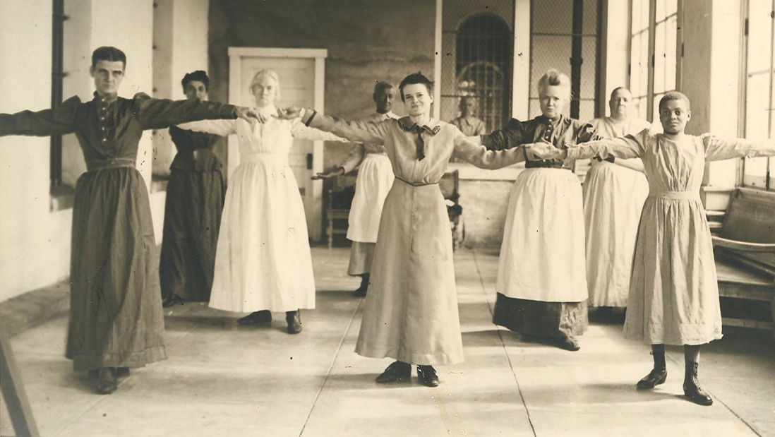 بیماران بیمارستانی در امریکا در حال نرمش دستهجمعی، دههی ۱۹۲۰ (Ohio History Connection)